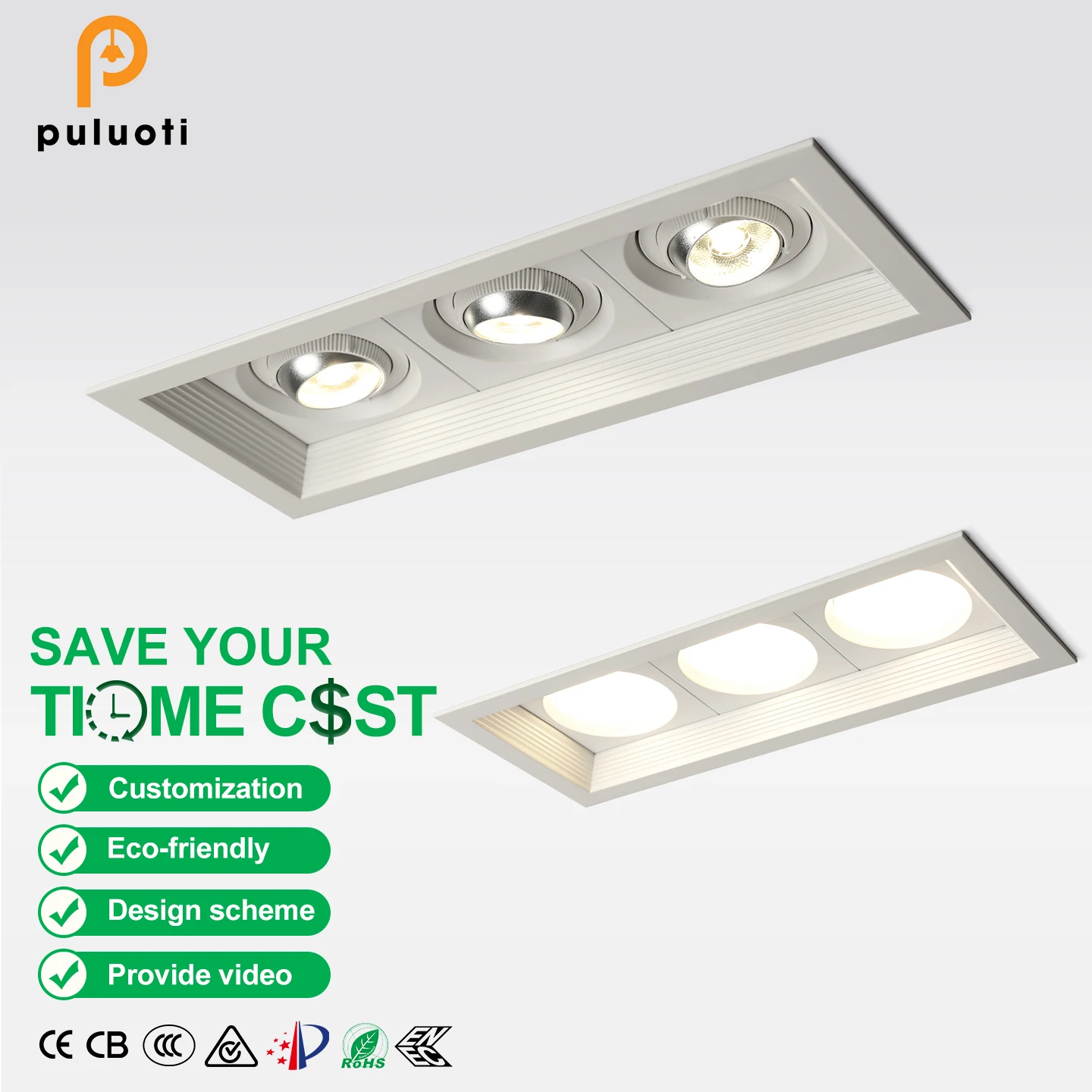 PULUOTI Modern 3-Head White Aluminum Spot LED Cob 21W 3000K Round New Design Indoor Living Room Recessed Spotlight for Home